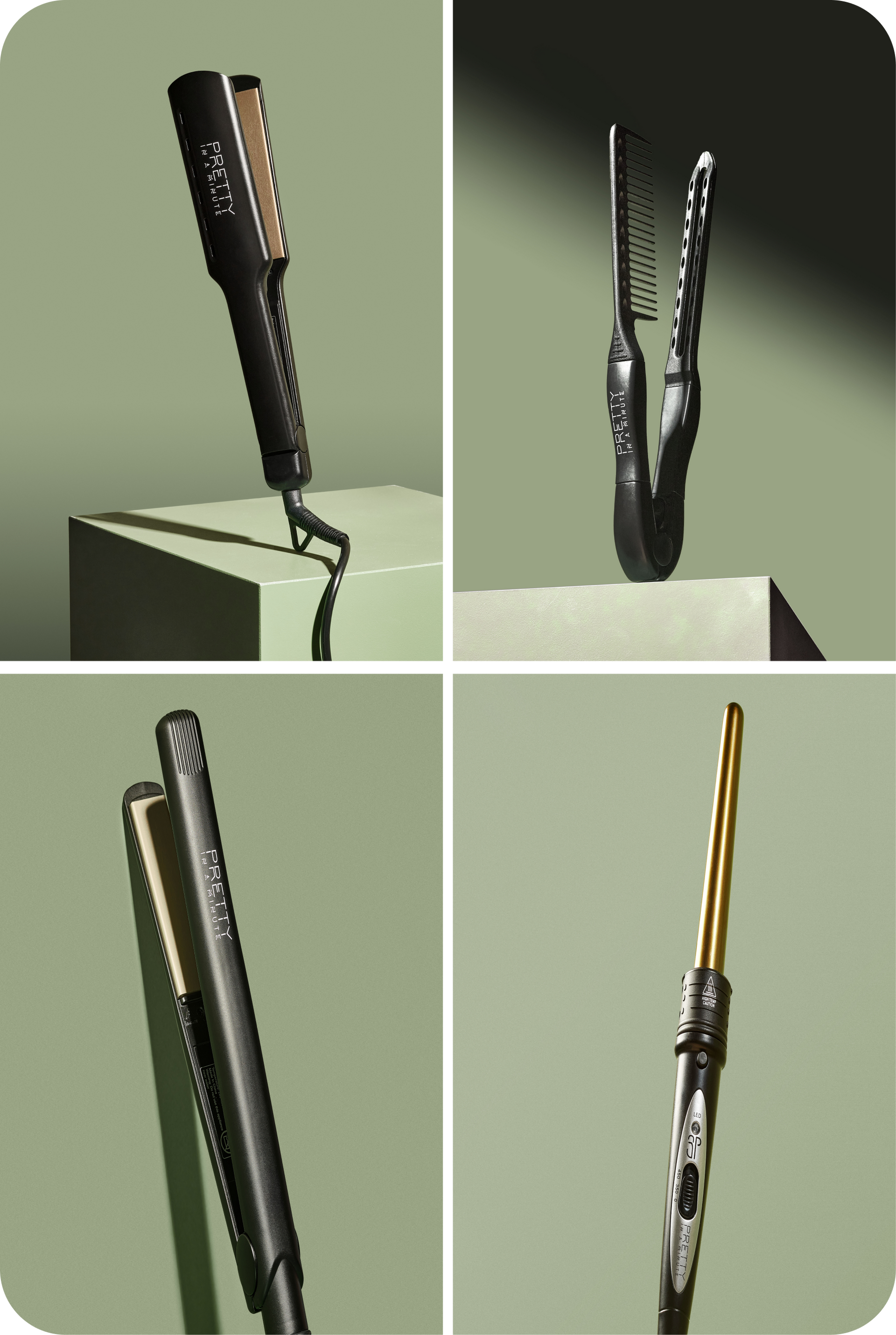 Explore our wide range of hair tools, including hair straighteners, curling wands, blow dryers, and more. Each product is carefully designed to make your daily hair routine effortless and enjoyable. Our products are made to the highest quality that professionals expect. Our Premium Flat Irons have some of the most advanced technology available, incorporating a true 50/50 blend of titanium and ceramic plates heating element, infrared, negative ion technology, and the unique floating plate. Our 3-in-1 Wand provides endless styling possibilities. Three interchangeable ceramic barrels help you to create loose waves, natural-looking curls, and ringlets. Our tools are result driven without burning the hair. Whether you're preparing for a special occasion or simply want to look your best every day, Pretty in a Minute has the perfect solution for you.